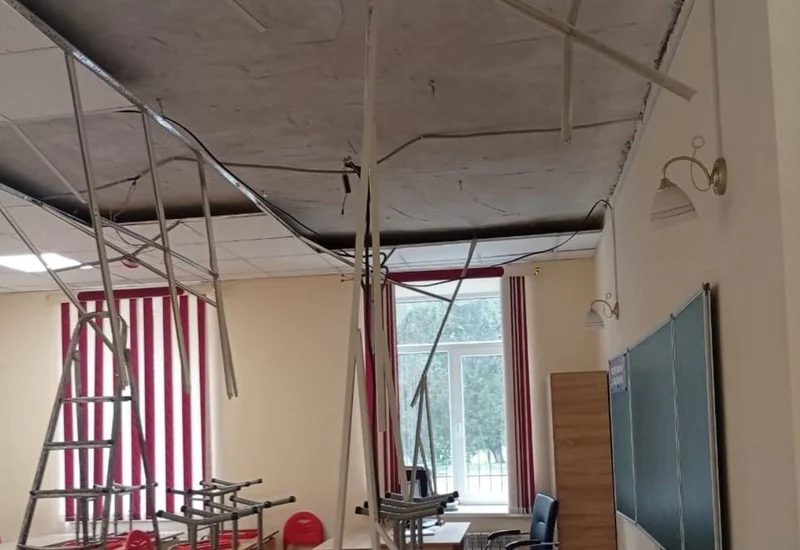 Инцидент произошел в средней школе № 2 города Нарткала Урванского района. Во время урока в кабинете кабардинского языка на учащихся рухнула подвесная модульная система потолка.