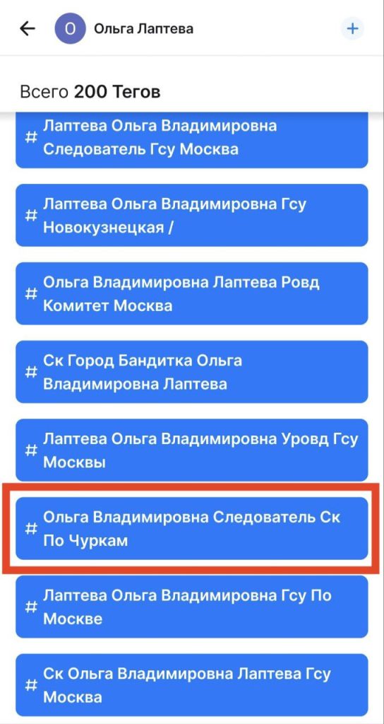 В Telegram-канале «Muslim Free», который публикует информацию от родственников и защитников Муслима Мурдиева появилась информация о следователе по его делу Ольге Лаптевой. Один из подписчков проверил ее контакт через программу GetContact. И выяснилось, что у абонентов ее телефон записан как «Следователь СК по ч*уркам».